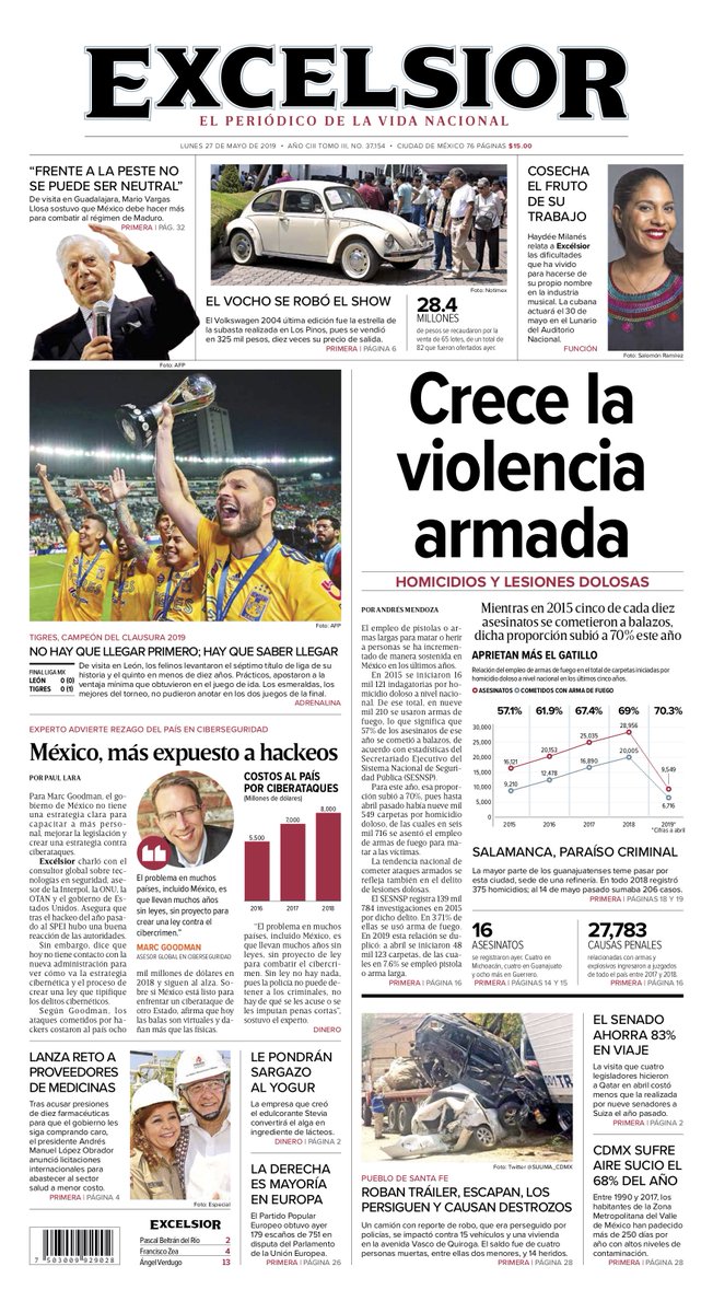 Para este año, de acuerdo con estadísticas del Secretariado Ejecutivo del Sistema Nacional de Seguridad Pública (SESNSP), la proporción subió a 70%, pues a abril pasado sumaban nueve mil 549 indagatorias por homicidio doloso, de las cuales en seis mil 716 se asentó el empleo de armas de fuego para atacar a las víctimas.